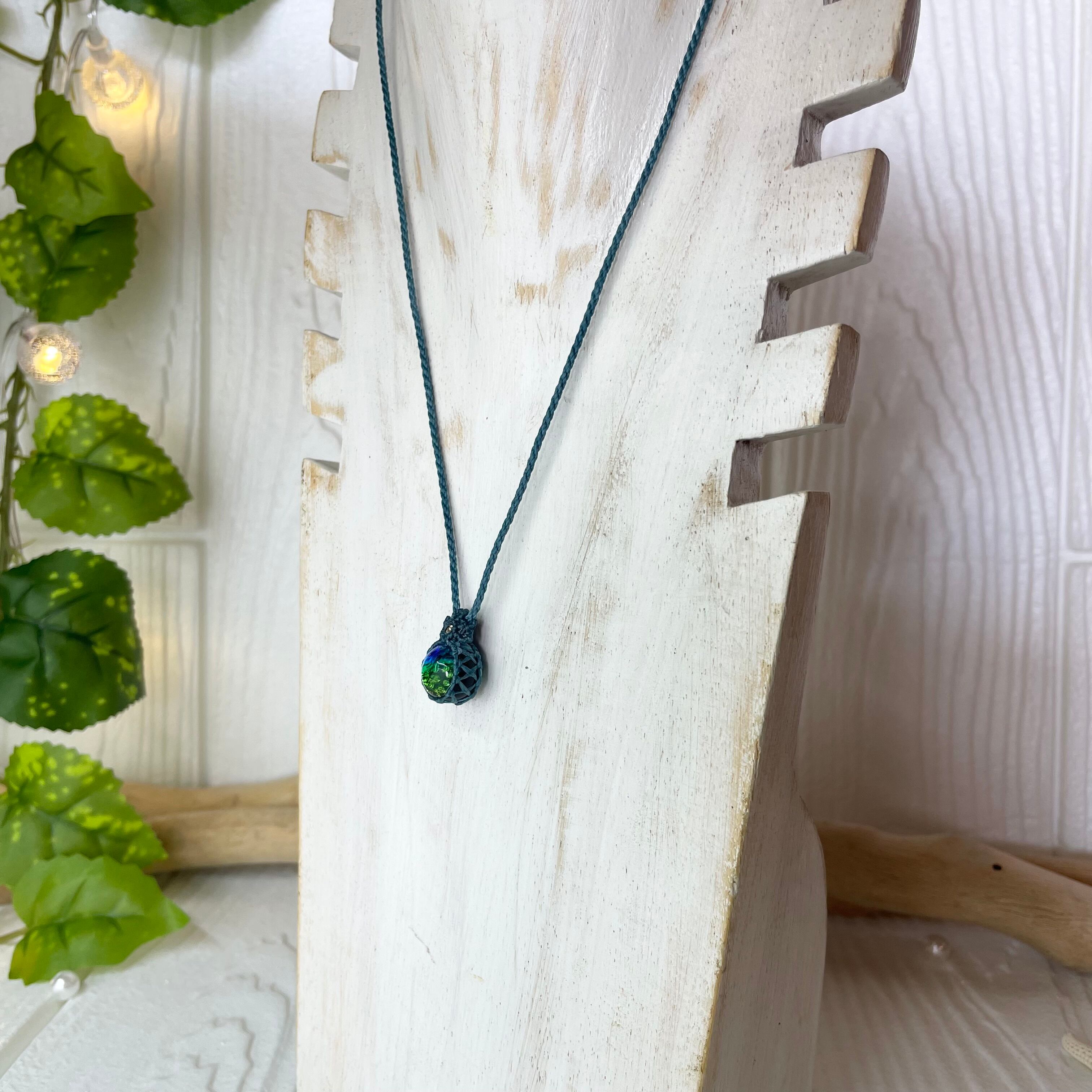 その輝きが、マクラメ編みによっていっそう引き立ちます。