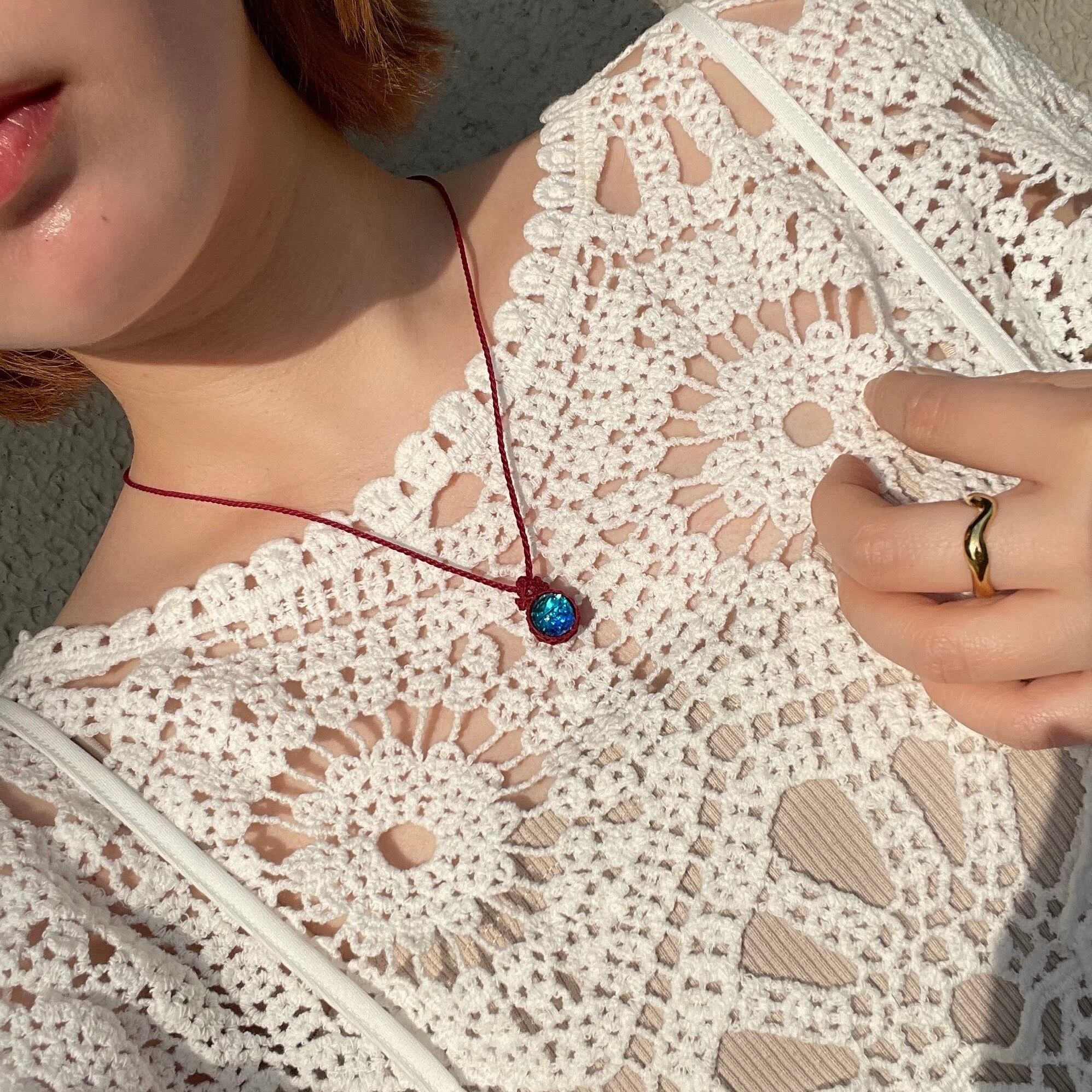 •裏面に焼き止め処理の跡(焦げ跡)がある場合がありますが、マクラメ特有の仕様です。