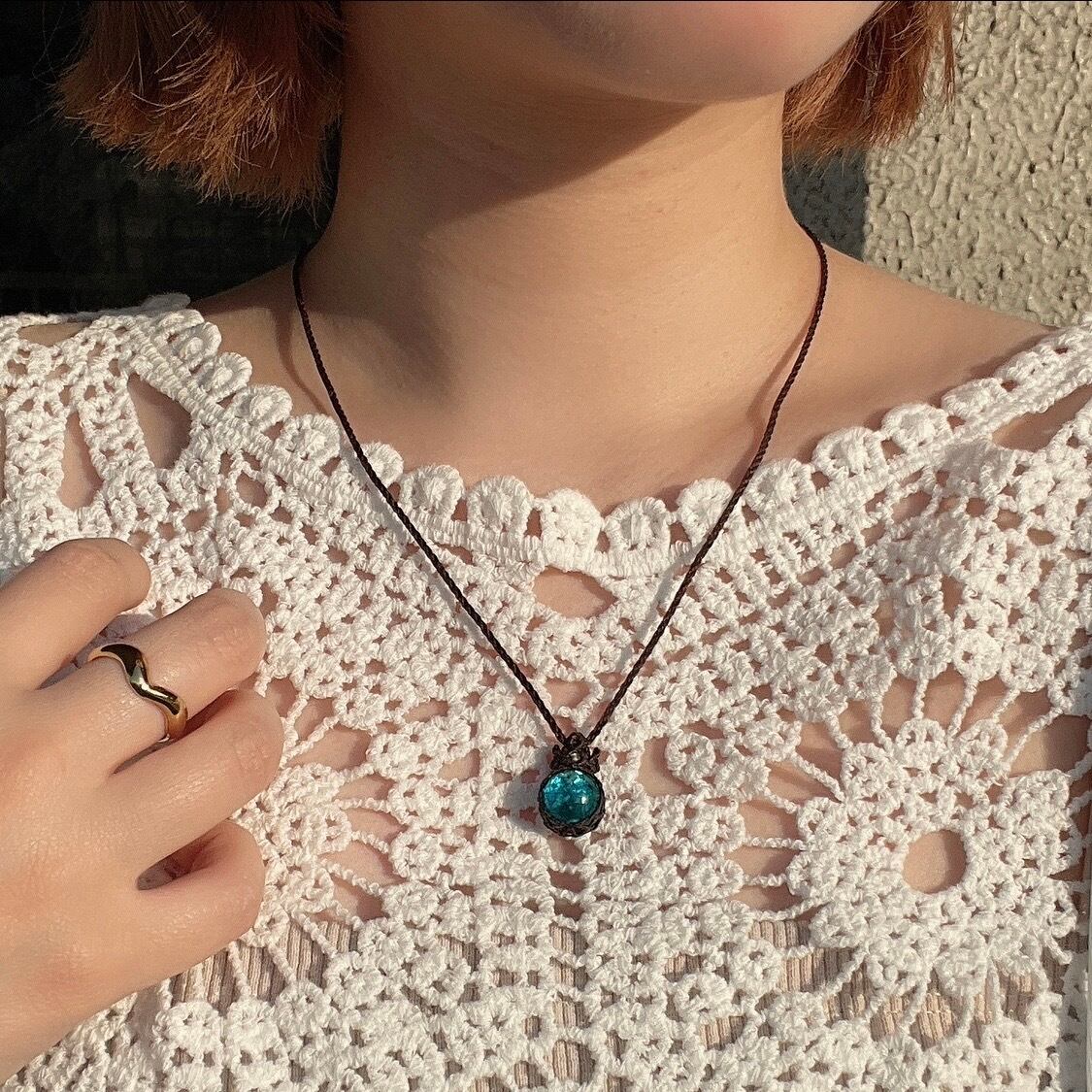 •マクラメ編みは接着剤を使わず、ワックスコードのみで仕上げています。強い力を加えると破損の恐れがありますのでご注意ください。