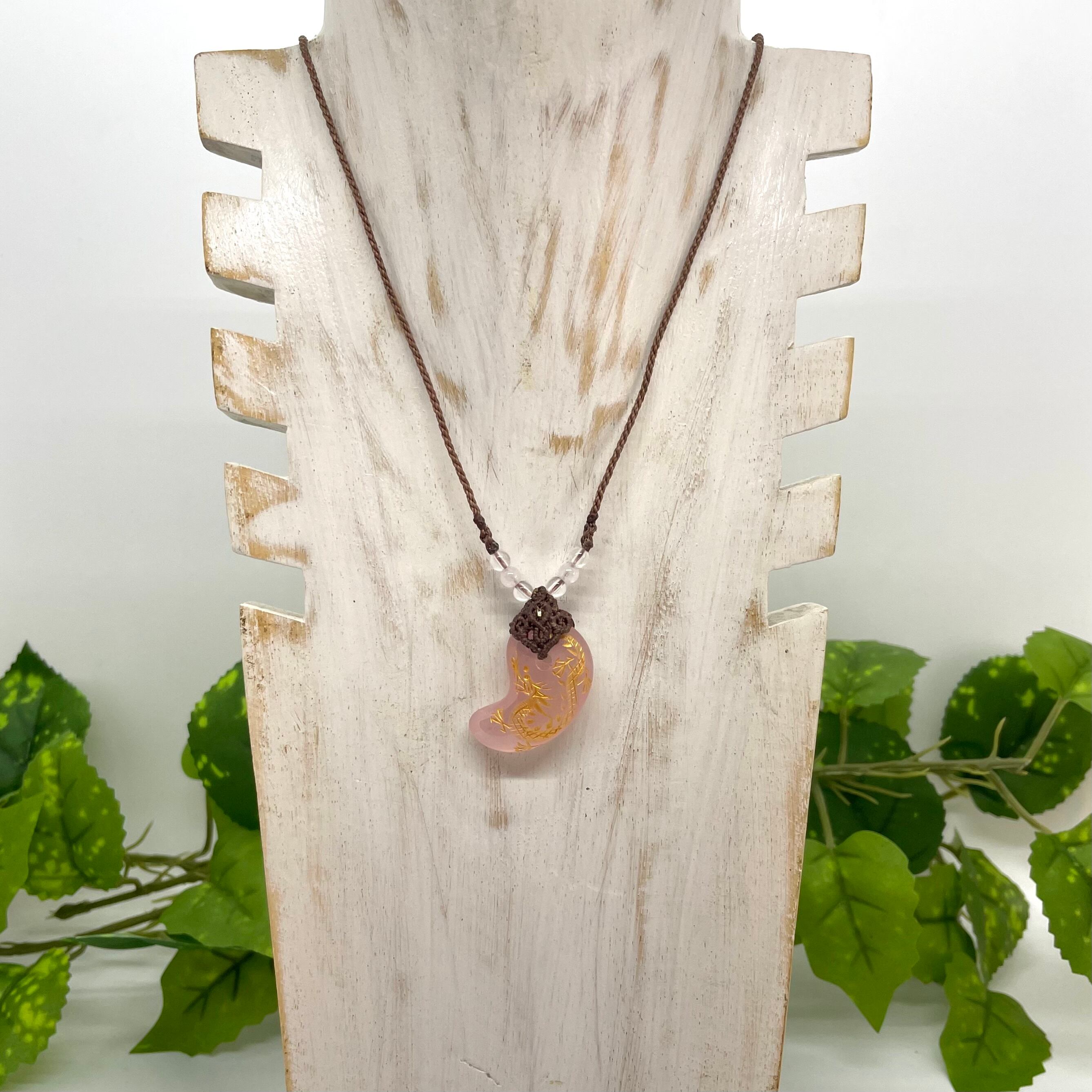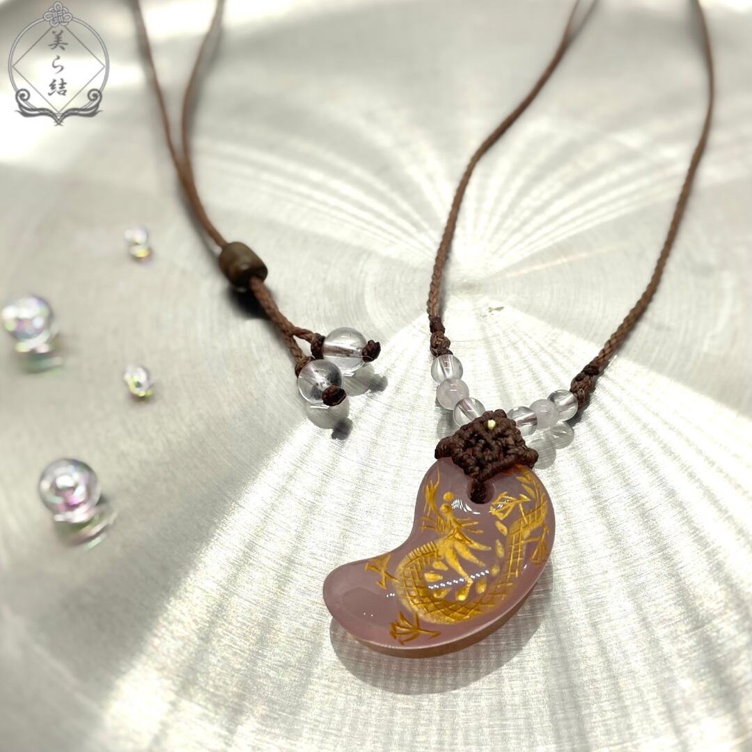 【商品名】ローズクォーツ 龍の彫刻 勾玉ペンダント